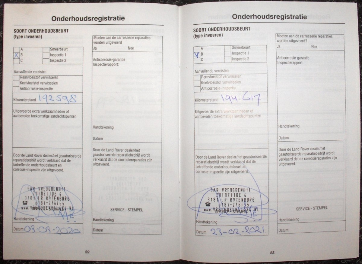 De kilometerstand is aantoonbaar 195047. Op km-stand 194617 is er een B beurt uitgevoerd. De auto is A.P.K. goedgekeud tot 4 maart 2022. Hij is vanaf nieuw door twee erkende gespecialiseerde bedrijven onderhouden.