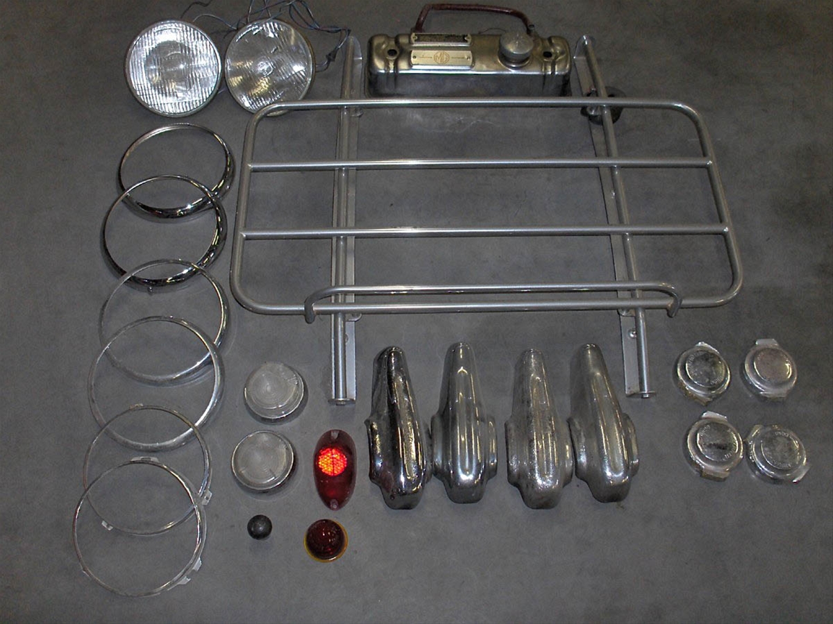 T.E.A.B. een partijtje gebruikte MG MGA onderdelen, waaronder 2 nieuwe koplampranden.