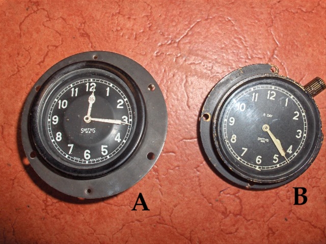 B = Uurwerk voor een vroeg model Bentley Mk VI & R-Type, Rolls-Royce Silver Dawn & Silver Wraith; handmatig, werkt telkens 8 dagen, werkt perfect. Vraagprijs € 295.00.