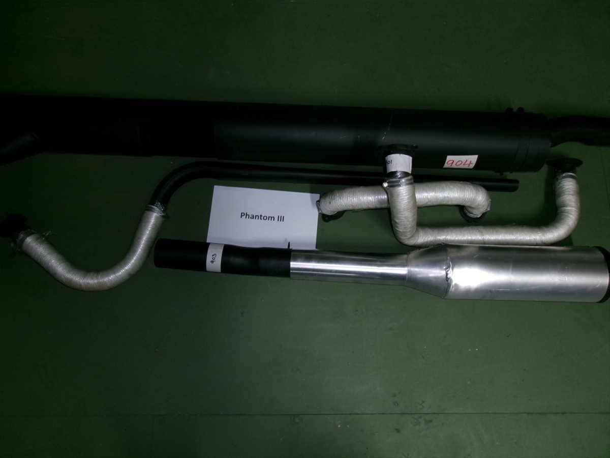1x Long down pipe, 1x Short down pipe, 1x Front expansion box, 1x Mian silencer, 1x Tail pipe, voor Phantom III.
